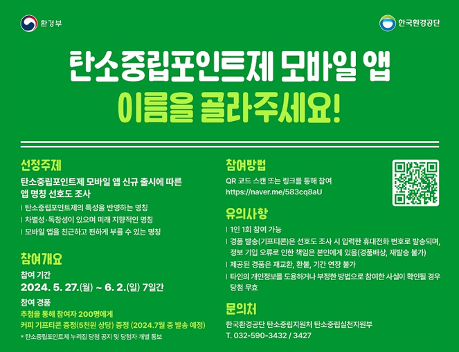 [이벤트] '탄소중립포인트제 모바일 앱' 이름을 골라주세요!